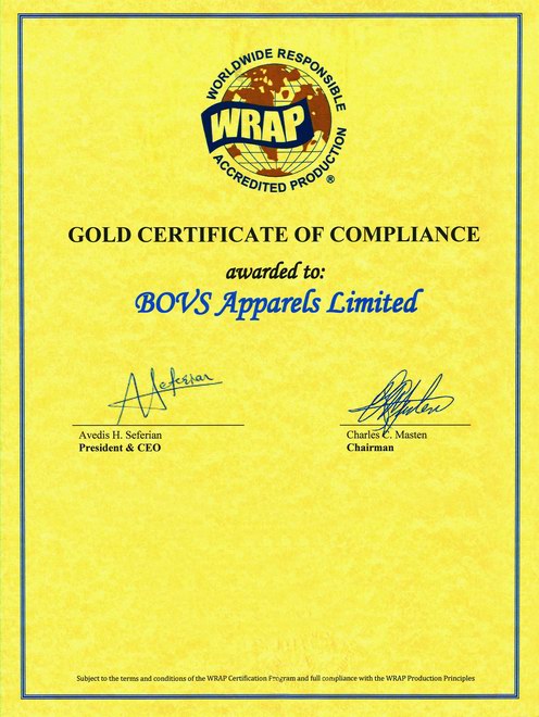 In BOVS, compliance is a process, not an event. To become responsible apparel producer, it is important to adhere and comply with local law & legislation which also meets ILO convention in terms of employment practices. This is being done continuously.